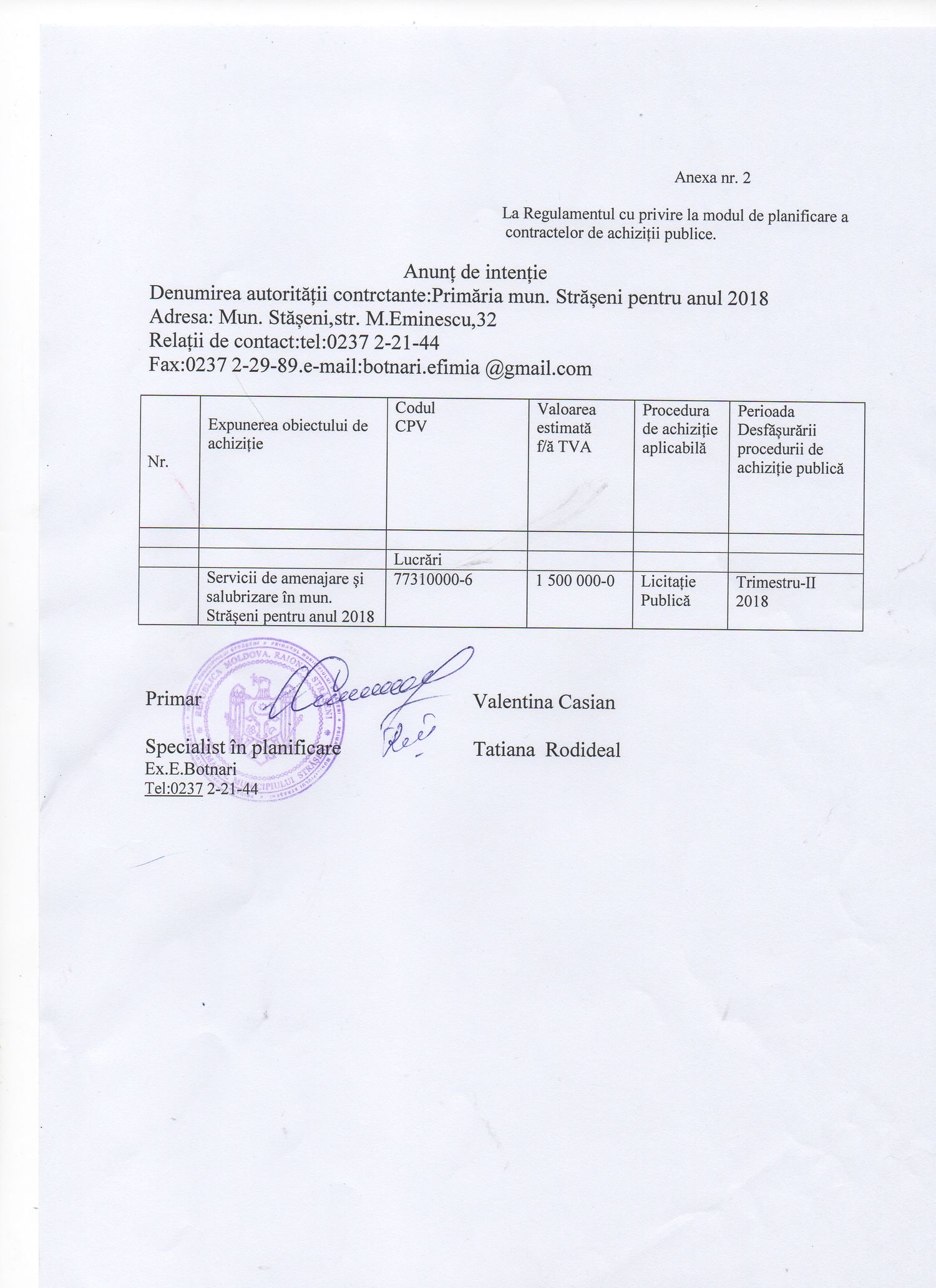 ANUNŢ DE INTENŢIE