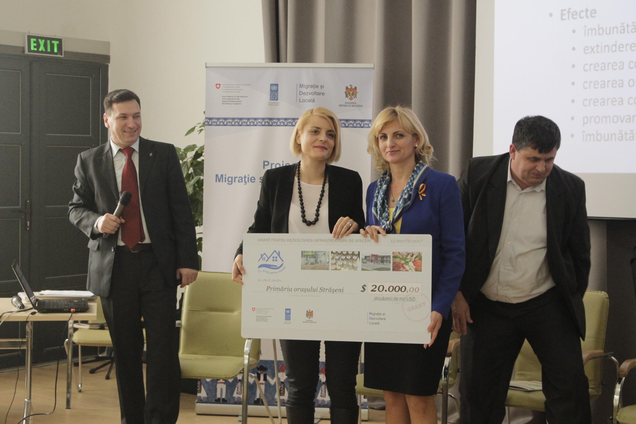 SUPLIMENTAR, alte șase localități din țară beneficiază de suport financiar în mărime de 20 000 $, pentru dezvoltarea economică a localității, printre care și orașul STRĂȘENI. Menționăm că, PROIECTUL respectiv presupune valorificarea și dezvoltarea platformei industriale a orașului Strășeni, prin dezvoltarea infrastructurii de afacerii, în PARCUL INDUSTRIAL ”CAAN”.