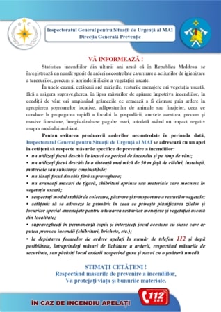INSPECTORATUL GENERAL PENTRU SITUAȚII DE URGENȚĂ ATENȚIONEAZĂ!